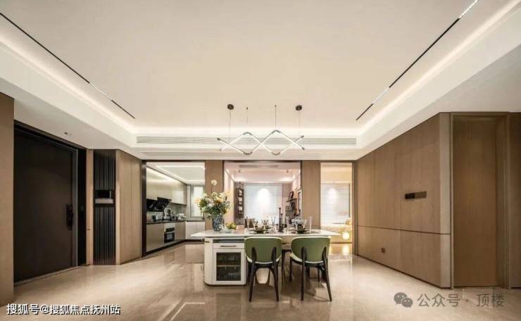 ③雅奢电梯与高配地库,尊崇感无缝衔接:电梯轿厢内,岩板、皮纹防火板与灰玻勾勒出静谧奢华;地下车库则以高定吊顶、玄关化设计与璀璨灯光,让停车时刻也充满仪式感。