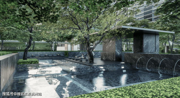基于恒温泳池的配置,凤起潮鸣得以摒弃日常使用率不高的户外泳池形态,创新出戏水区、浅水区、泡池区以及深水区等不同主题的功能模块。