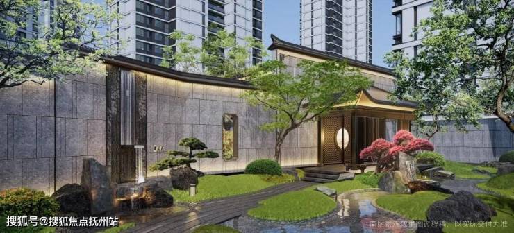 项目以门庭为礼序之始,南、北区各配置磅礴威严国风大门,为每一次回归赋予尊贵仪式感;建筑立面,三面大面积铝板+玻璃、涂料等用材,雕梁画栋国风意境,简约不失华贵;多进式归家园林,汲江南山水、历史源流、人文风物之精髓,绘就东方山水画卷。