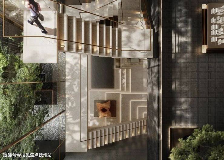 社区精心打造约6.5米深的下沉式“峡谷瀑林”庭院,以“城市山林”为构想,用约400吨天然景石精心垒砌成峰,搭配潺潺流水与葱郁植被,力求呈现“虽由人作,宛自天开”的自然意境,恍如置身世外桃源,带来超现实的沉浸体验。