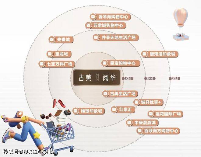 商业配套方面:【古美阅华】家门口就是约130万方的商业九星城。4大商圈环伺,西有七宝商圈、东南有南方商城商圈、西南有莘庄商圈、北有吴中路商圈,便利度直逼内环!