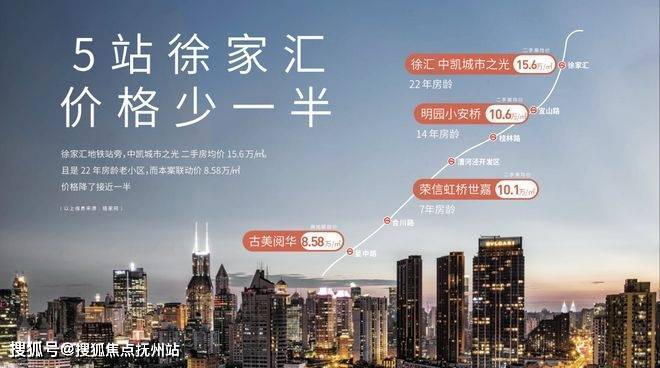 5站可达徐家汇,徐家汇二手次新房均价达15.6万/㎡,5站地铁价格几乎减半,性价比优势极为突出。