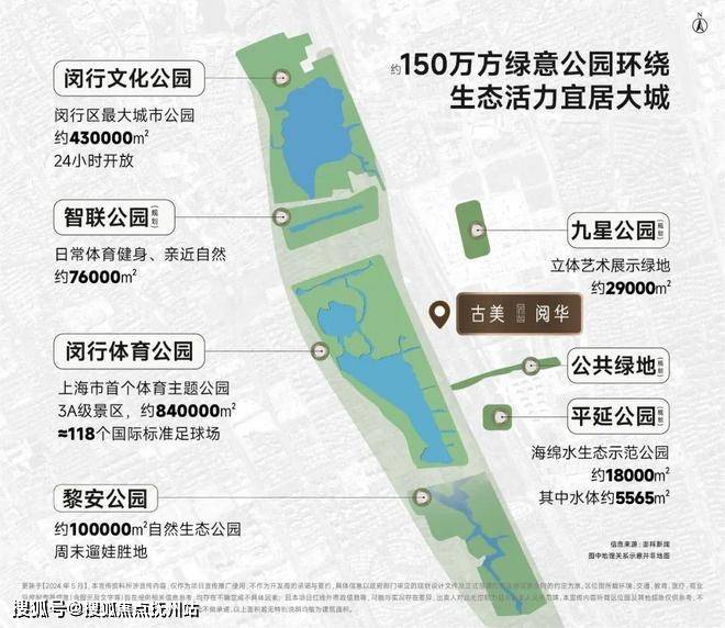 生态资源方面:绿化资源是最大的特色之一,毗邻约84 万方闵行体育公园,约43万方闵行文化公园、双拥公园,黎安公园 ,古美公园以及九星板块规划中的三块公共绿地 ,近150万方生态公园联盟体系串联起一个都会生活绿轴。