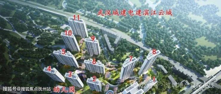 武汉城建电建滨江云城占地面积约7.8万方,总建面约32.2万方,容积率2.99,共1537户,机动车停车位2372个,车位比约1:1.54。包含11栋住宅、约3.2万方办公、约1.2万方商业,以及1所幼儿园。
