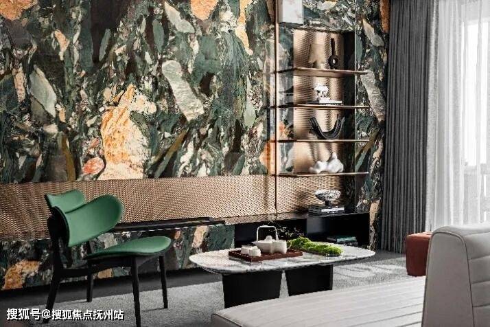 .无主灯以及成品金属收口打造精致空间,木饰面和原始森林石材运用。