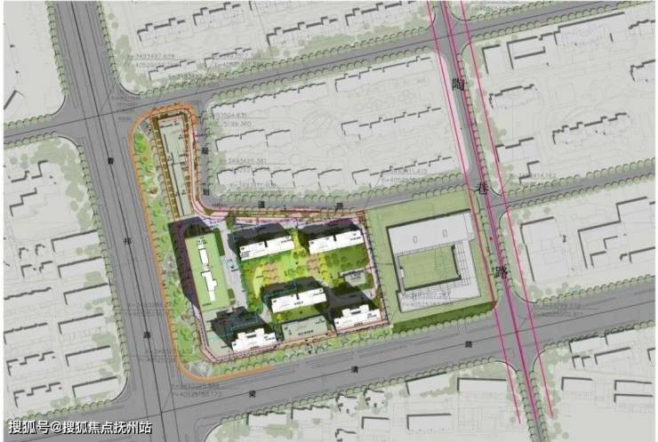 项目用地面积约2.4万㎡,容积率约2.6,位于无锡市滨湖区,青祁路与梁清路交叉口东北侧,是“河埒口”的中心。明洪武年间,北方家族群迁徙至惠山,集族而居,养鱼为生,古汉语中筑堰围堤称为“埒”,"河埒口"因此得名。这里曾热闹非凡,烟火气十足。时至今日,城市更新,大润发、万达取代了之前的西郊市场与市井老街,但这里仍拥有十足的生活氛围。项目分为8栋建筑,3栋8-10F洋房,2栋高层住宅,1栋办公,2栋商业。