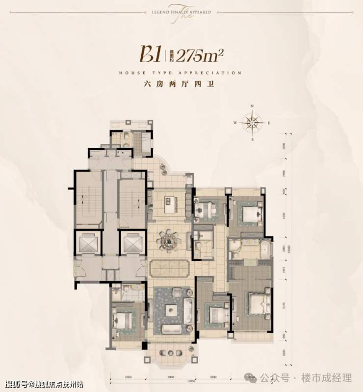 户型:275㎡ 六室两厅四卫