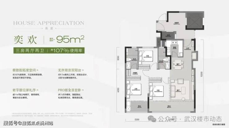 建面约95平三房两卫,优化后约107%的使用率