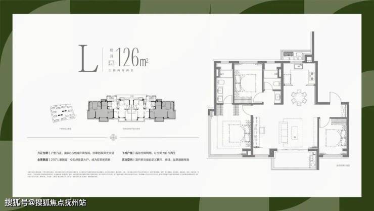 建面约89、103、126m²部分户型设计了270°全景视野的L型飘窗;建面约99㎡户型设计了转角阳台,引园入室,景观视野更震撼,带来IMAX级视觉体验!