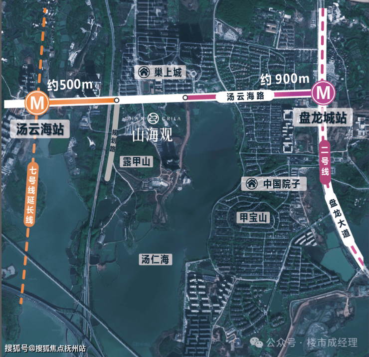 距离地铁2号线盘龙城站和建设中的7号线汤