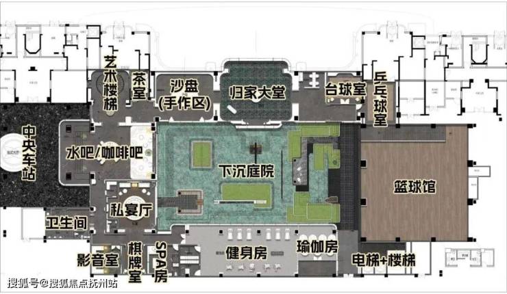 除了常见的健身房、瑜伽室、棋牌室、水吧会客区、茶室,还有私宴厅、观影室、SPA房、台球室、乒乓球房,甚至篮球馆。