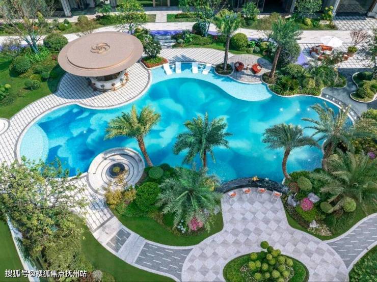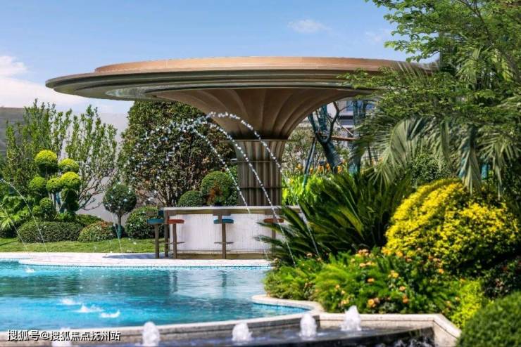 在情绪价值至上的时代,鸣澜里的景观园林也充满了疗愈感。异形的中央水景,悬浮的岛台,充满热带气息的棕榈植物,度假的场景和轻松的氛围十足。对于工作繁忙、生活需要放松的都市年轻人而言,下楼就是旅行、归家就是度假的生活场景,才是家和工作之外最好的第三空间。