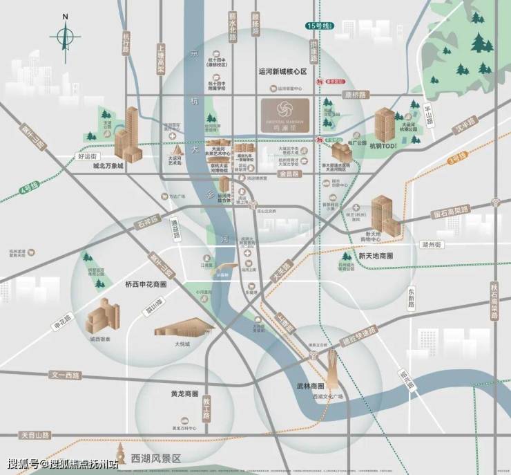 鸣澜里拥有双地铁的绝佳配套:直线距离已经通车的4号线平安桥站约700米,在建的15号线康桥路站约320米,是杭州主城区少有的双地铁新房。