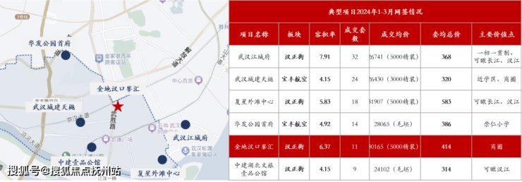 ▲金地汉口峯汇周边典型项目点图及成交表现