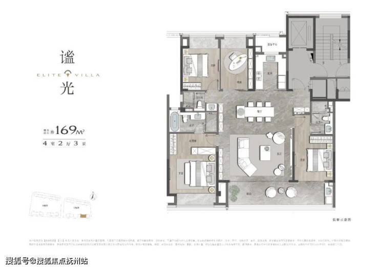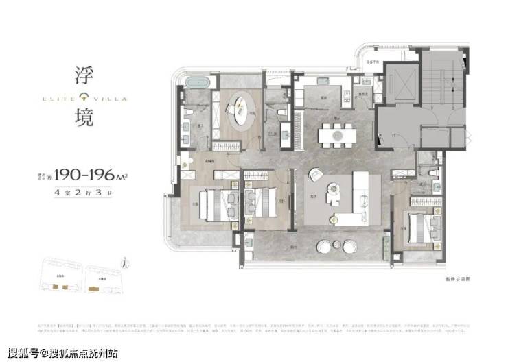 建面约190-196㎡四房两厅三卫:独立玄关,增加了归家的仪式感和收纳空间;开放式厨房与客厅设计,打造出家庭互动空间;主卧L型露台的设计,视野范围可达 270°,将运河、惠山等美景尽收眼底。
