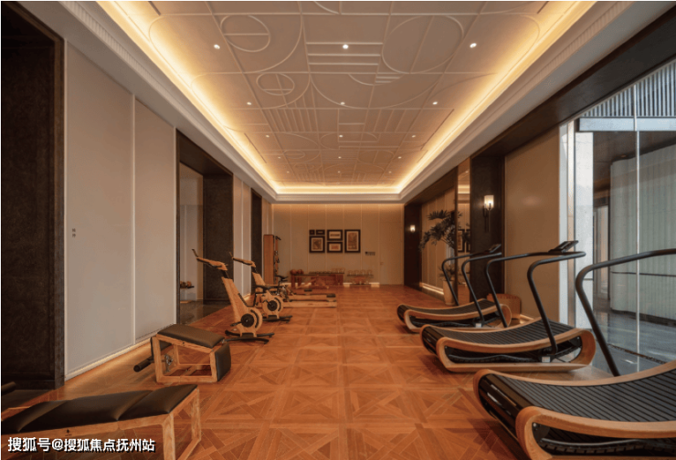 传承百年工艺手工打造拼花地板,隐匿式氛围光模拟塞纳河畔落日,器材选择上,为业主定制的沃特罗伦(WaterRower)品牌健身房, 全部采用珍贵的全木质健身器材,触感温润细腻