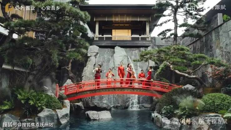 假山、叠水、屏风、叠瀑之下架一座小桥,假山依水,风水上佳,你可以在大落地窗的会所里倚窗观景。