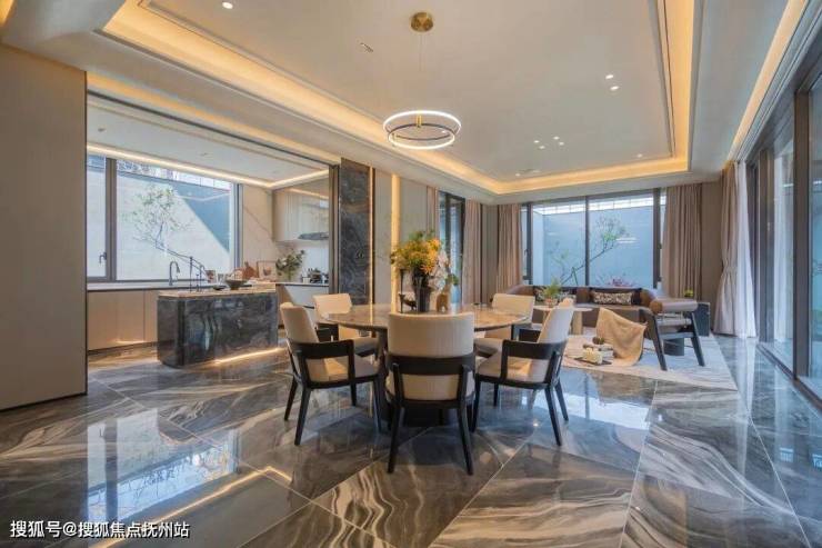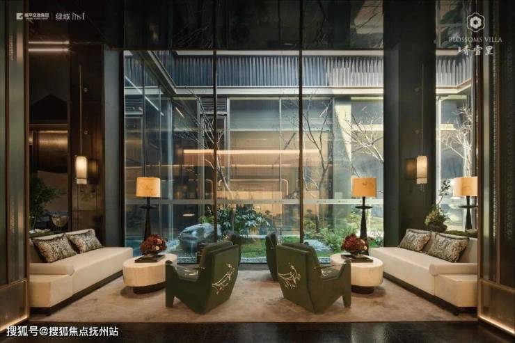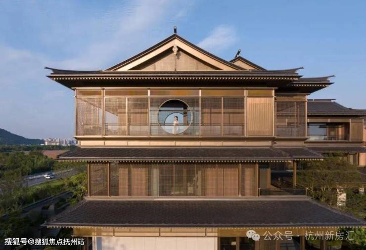 建筑立面:古今交融的诗意表达:外立面以香槟金铝板为基调,搭配蓝眼睛石材与玻璃幕墙,融合传统歇山重檐、纳福悬鱼等元素,既保留宋式建筑的对称美学,又赋予现代建筑的轻盈通透。合院组团采用三面庭院设计,L型景观面与环绕式檐廊,将超山梅影、丁山湖光引入每一扇窗景!