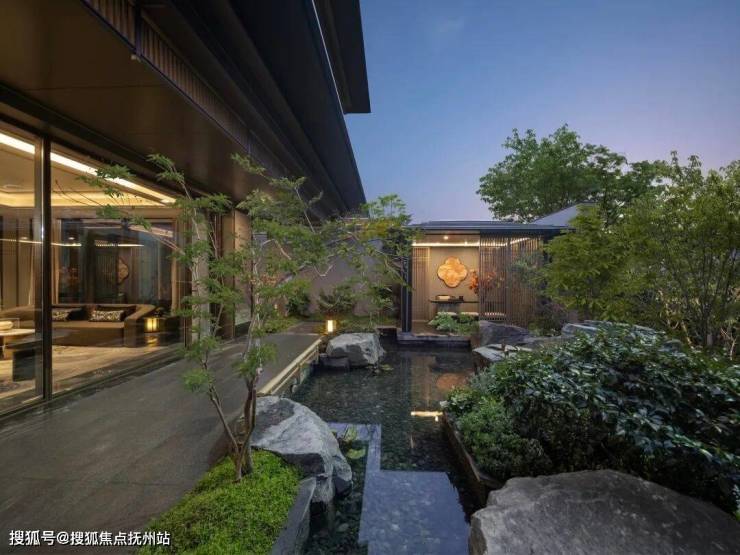 漫步于光影交织的幽静庭院,您将踏入一方充满诗意的天地。潺潺流水映照着婆娑树影,挺拔树姿为这片空间注入向上的生机,纵向延伸出无限的视觉张力。这座下沉庭院,不仅拉近了建筑与自然的情感共鸣,更使室内与景观紧密相连、和谐相融。每一扇窗户,都犹如框中的一幅生动山水画。
