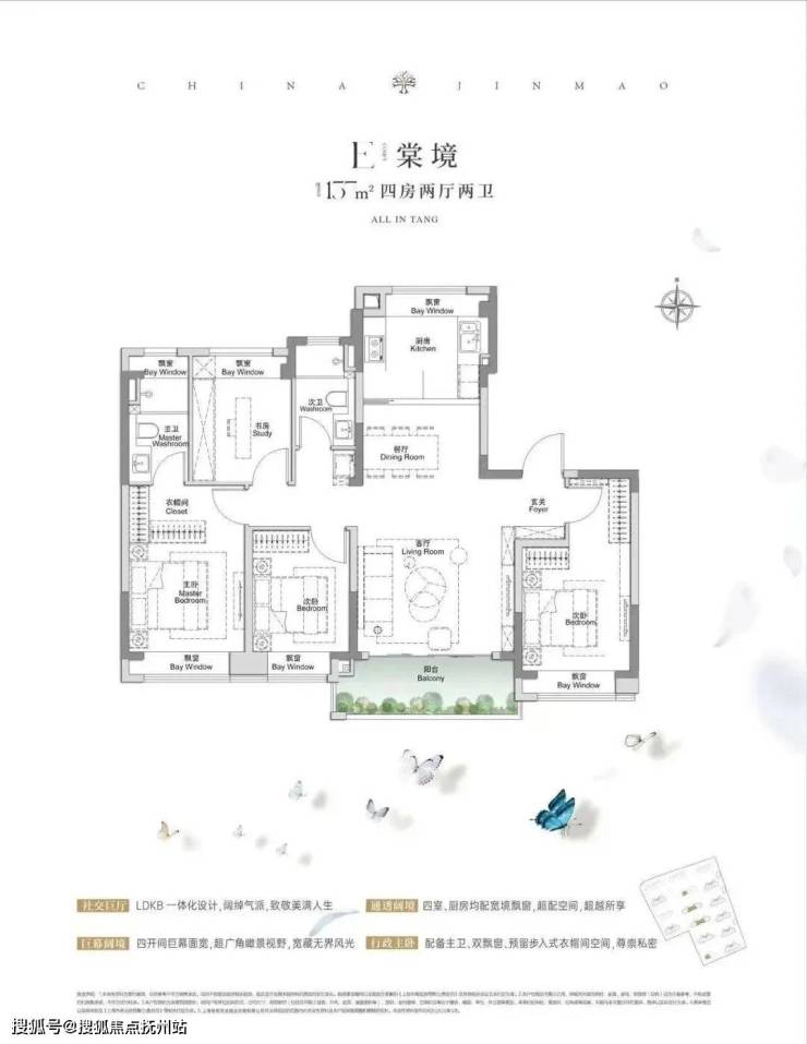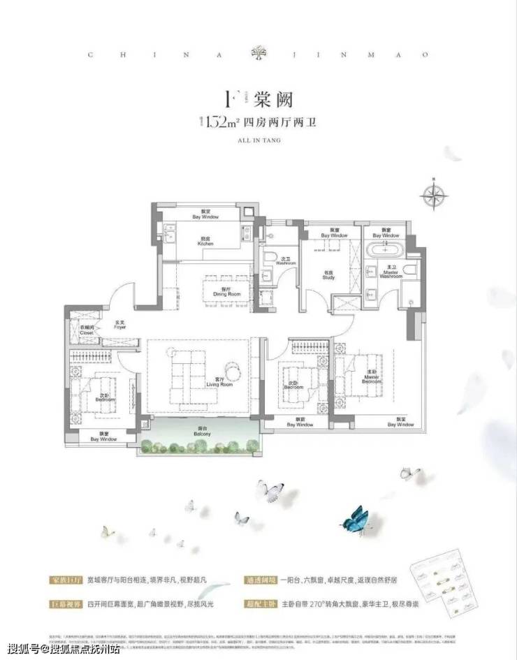 建面约117㎡3房2厅2卫,做到了3+1开间朝南+5个飘窗+主卧套房设计+270°转角飘窗,所有的尺度都有进一步提升。