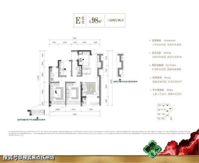 建面约98㎡百平内稀缺小户,S墙设计、库式入户玄关、半开放式厨房、三开间朝阳格局,赋予空间与家庭同步生长的张力,让空间越住越大。