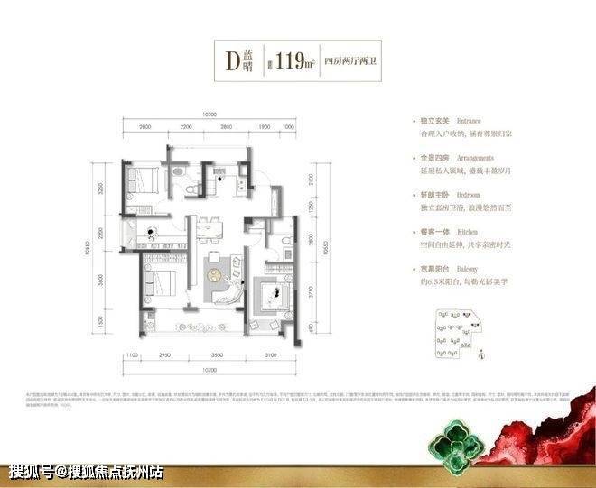 建面约119㎡精致四居,难得一遇的边套南厅舒适格局,约6.5米阳台无界连通餐客厅及独立玄关、套房式主卧,直接带来居住感受的实质性跃升。