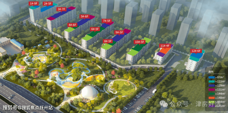 —— 规划产品87-155㎡的5-9层宽厅洋房、148-171㎡府院叠墅