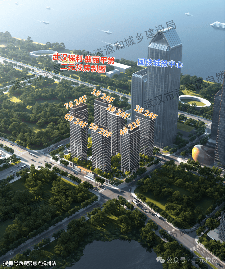 武汉保利·翡丽甲第规划由7栋住宅组成,楼栋总高为20-21-24F,住宅高度均低于80米,两梯两户设计。