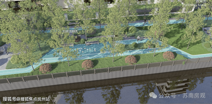 更巧妙的是,项目东临古塘河,通过设计引景入社区,营造了约2600㎡的滨水生活公园,下楼即享的公园生活成为日常。
