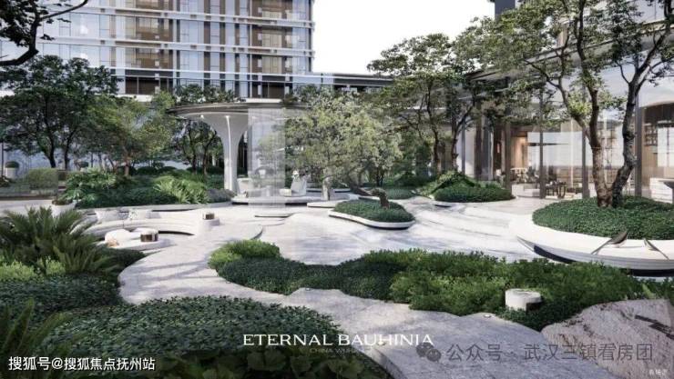 武汉江水在地文化中提取流水元素,以曲水流觞意境,呈现艺术化的品味及审美。