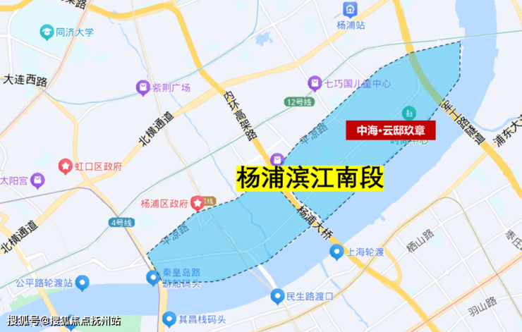 中海·云邸玖章距离江岸直线距离仅约500m,作为当下片区内离江最近的项目,享美团、B站、超极合生汇等地标综合体配套,杨浦滨江生活中心。