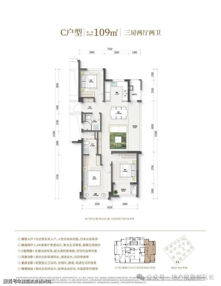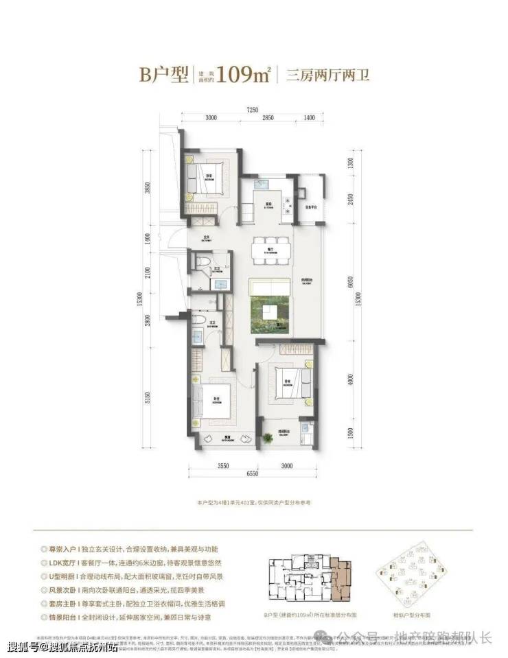 109平米户型:尊享三室两厅双卫设计,配备独立玄关,宽敞横厅边套,功能分区明确。配备生活阳台与休闲阳台(全包),实现13米超长采光,打造舒适明亮的生活空间。