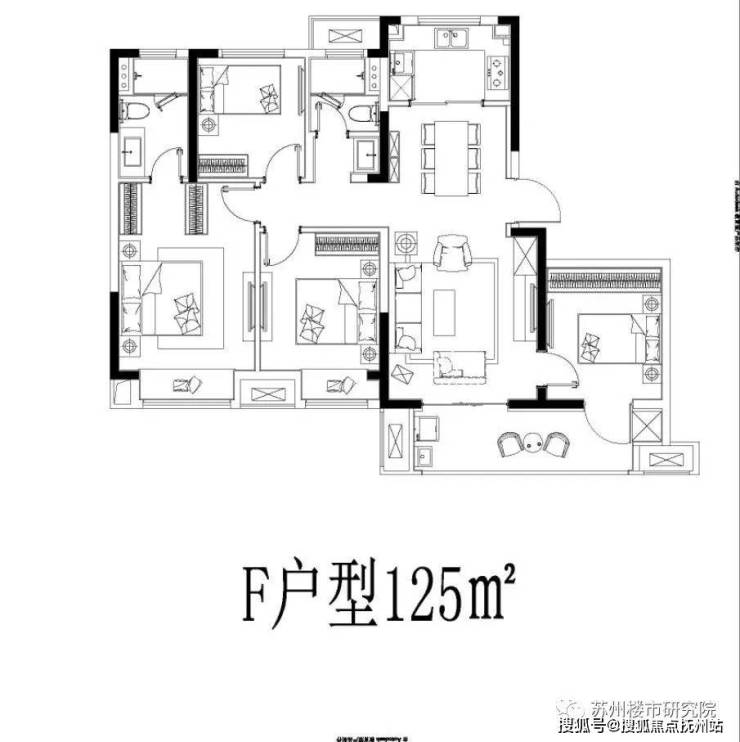 120平4-2-2,总价240万-250万3+1房,九宫格格局,三叶草户型,双阳台,适合人口较多的入门改善客户