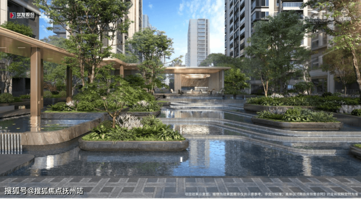 三重·水院之奢,沉浸于无界。约350平方米的核心水院的涟漪勾勒“远山如黛,秋水含烟”之境。跌水、浮岛、精选花木的视觉平衡,在动静间辉映。