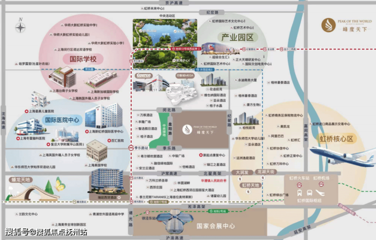 峰度天下位于上海虹桥商务区的南虹桥核心前湾板块,汇集国际高能配套,数字经济,生物医药,文创电竞三大产业布局,国际医学中心配置1个医技中心和7家高端医院,7所国际学校,3大超级商超,京沪高速,北翟高架,崧泽高架,嘉闵高架,沈海高速三横两纵交通路网,虹桥交通枢纽机场,高铁,地铁,公交,城际大巴等立体交通,13号线季乐路站在建(距离仅500米),且有园区巴士早晚高峰直达虹桥高铁站,无限便利。
