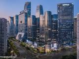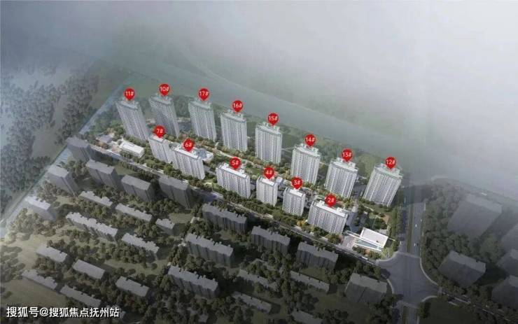 地块较为狭长,布局为两排合围式结构,北高南低,中央景观绿轴长度约380米,营造中央公园式生活住区。
