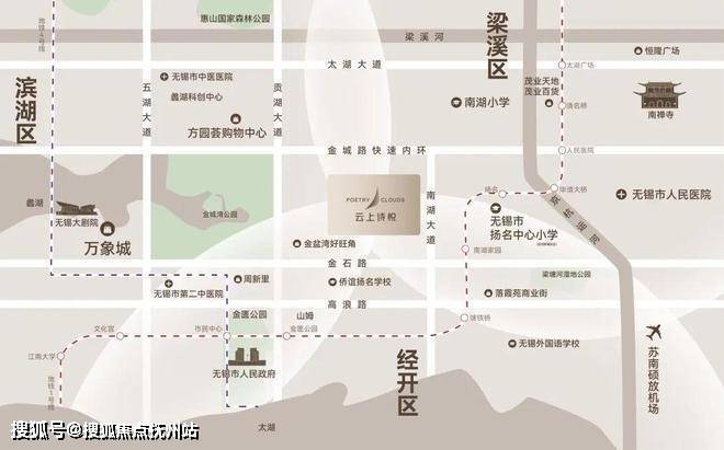项目紧邻金石路、快速内环南、南湖大道三条城市轴线,可快速抵达无锡各个主城区,出行便捷从容;同时,三条城市轴线将自然生态、多元商业、人文休闲等资源串联,美好生活的想象由此展开。