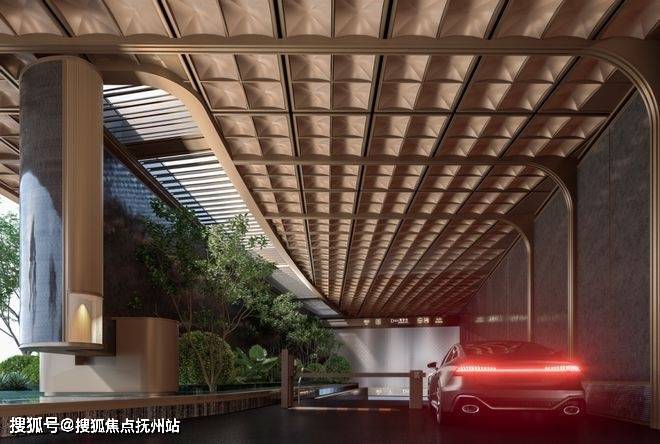 打造3个车库出入口,7米双车道,地库入口旁均设计储藏室,同步配置司机休息室;车库全奢装理念,坡道出入口采用石材墙面+不锈钢星空顶设计。地库车道采用金属网+透光云石灯设计,车道地面采用无机磨石地坪,耐久性光泽度及平整度好,车道立柱采用岩板外包。