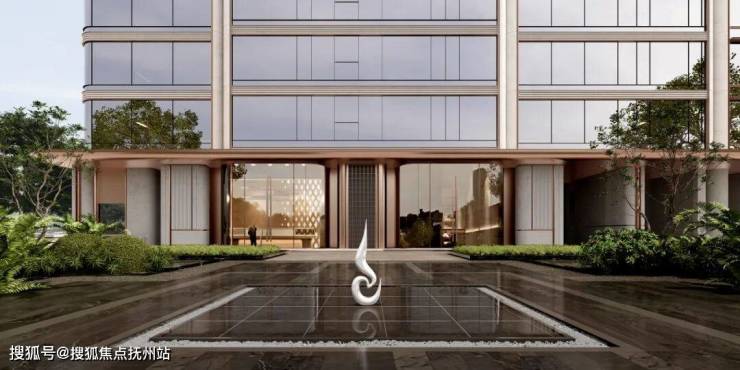 整个大门就是一个精心打造的艺术装置,也是目前武汉独一无二的尊崇归家设计。大门采用仿铜不锈钢材质,纹路同样提取自项目 LOGO,握柄镶嵌宝格丽绿大理石,奢华雅致之感不言而喻。入口景墙采用独特圆弧工艺,柔化硬朗边界,搭配项目专属定制 LOGO,将外滩玺的大气质感与精致细节完美融合,从踏入社区前,便以建筑语言传递项目的高端品质与独特格调。