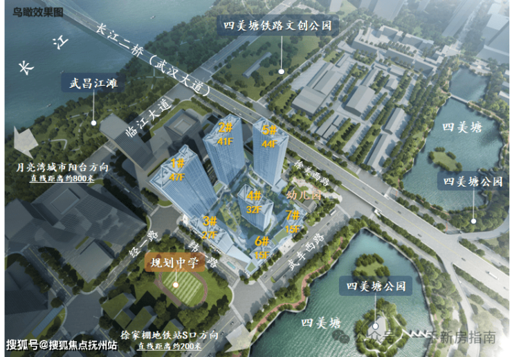 项目位于长江畔,背靠四美塘,有月亮湾城市阳台、四美塘公园、四美塘铁路文创公园、武昌江滩公园、新中央公园(规划)等五园环绕,人文生态体系景色宜人,天然城市氧吧,生态宜居。