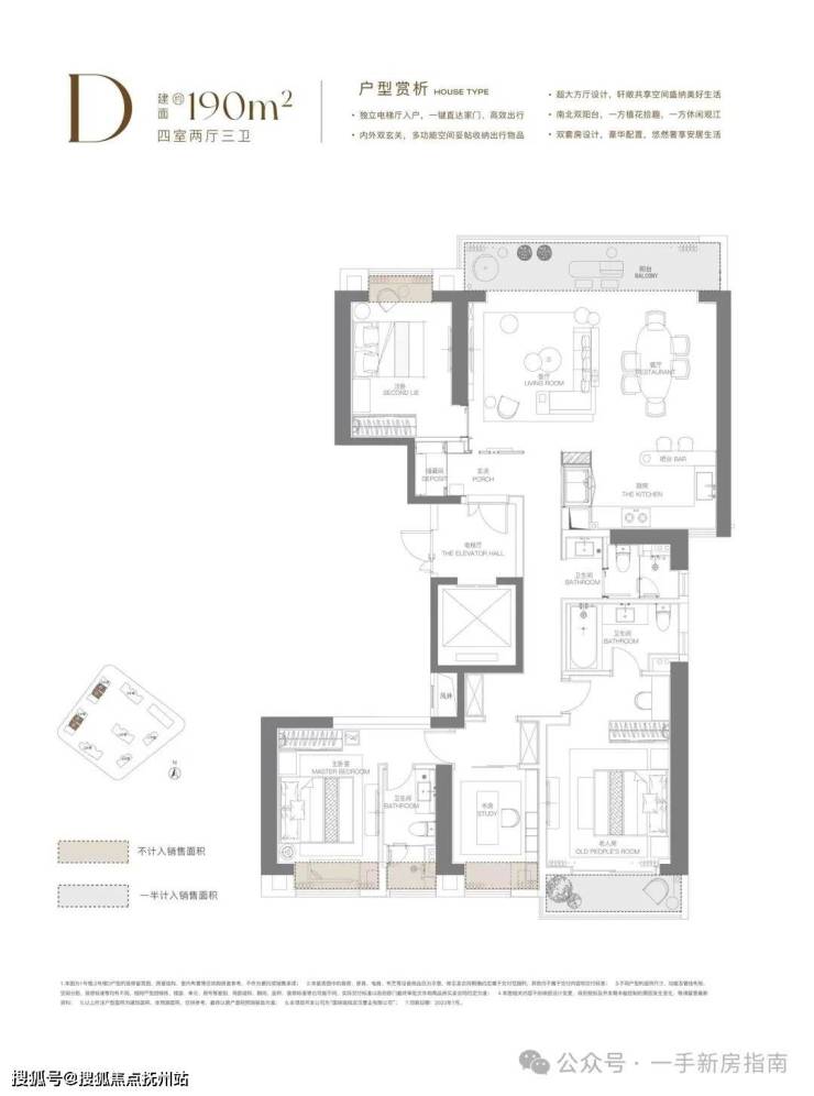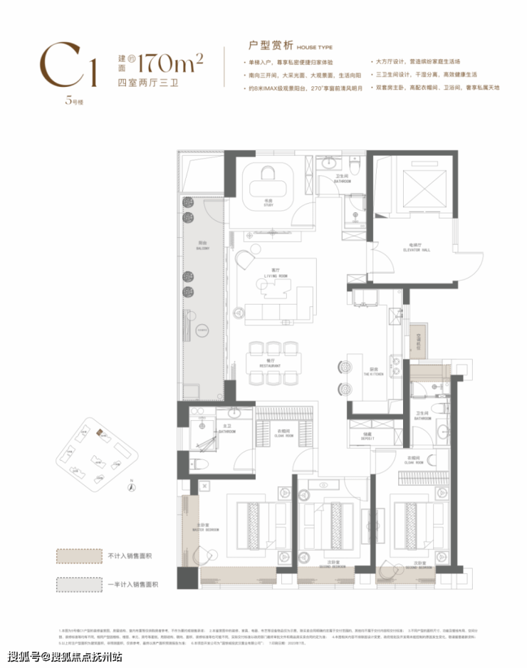 建面约170平,四房两厅三卫: