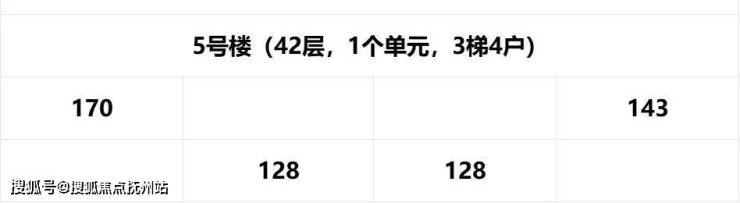 国铁城投国樾滨江已推出3号楼,5号楼为44层,1个单元,3梯4户,分布户型为建面约128-170平户型。