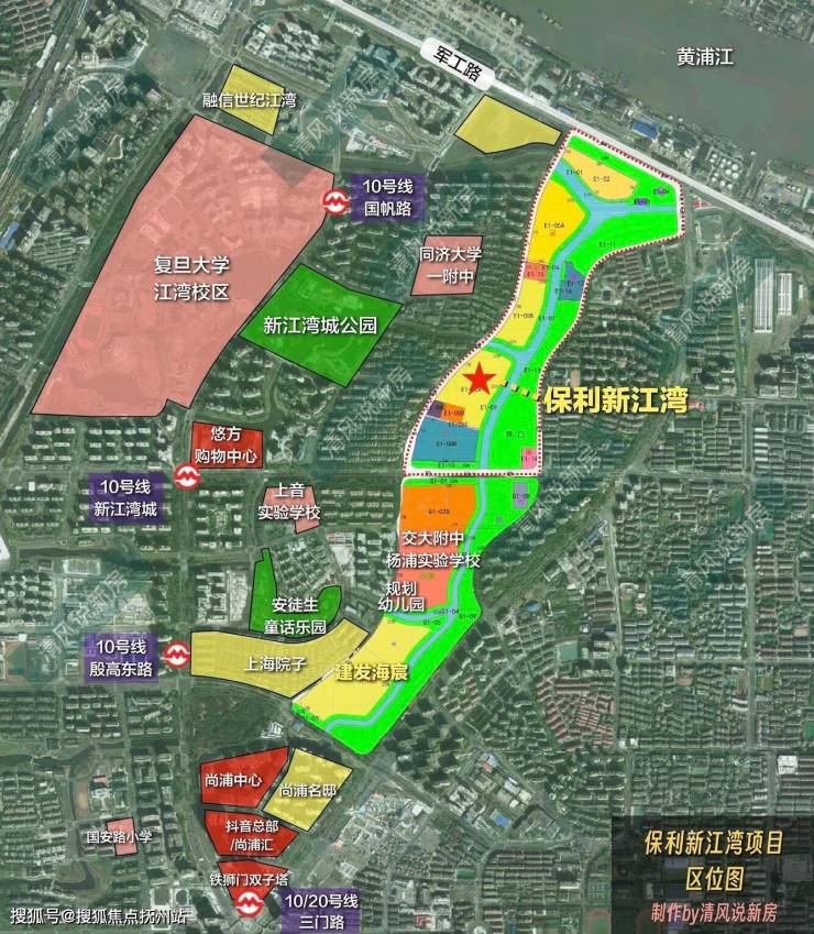 地块位置:杨浦区新江湾城街道439街坊E1-08A地块,位于新江湾城北侧,直线距10号线新江湾城站约1.2公里。