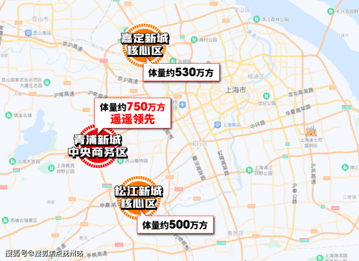 对比一下嘉定新城约530万方,松江新城约500万方的中央商务区,青浦新城中央商务区的能级和规模无疑都是更高的。