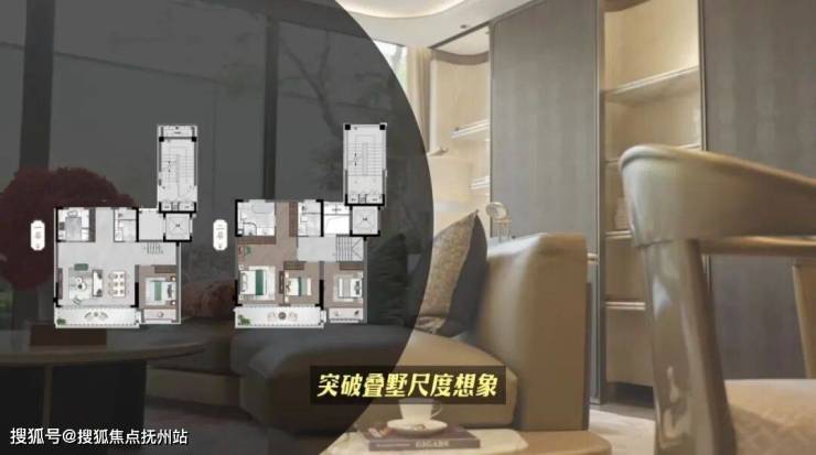 (建面约)173㎡的下叠突破叠墅尺度想象,约8.9米颠覆级南向尺度,约6.1米平层式横厅,把叠墅做出合院效果。