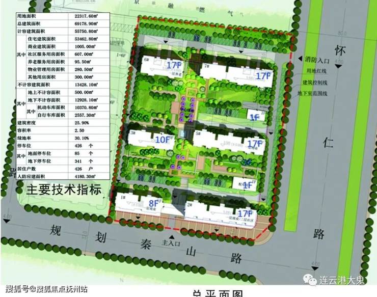 建筑密度:25.90%;容积率:2.50;绿地率:30.10%。停车位:426个。据住户数:426户。