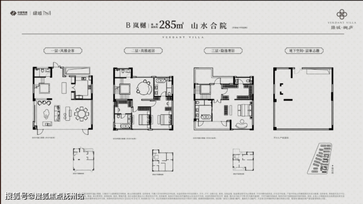 【户型鉴赏:有天有地,盛放人生志趣】 项目主打建面约285-340㎡山水合院与约200-305㎡诗境叠墅,提供多样化的苏州合院选择。 合院臻境,纳藏天地:拥有私家庭院,可栽竹赏景;配备灵动地下空间,可打造影音室、酒窖等;全景客厅开阔通透,顶层主卧静谧奢享。 叠墅产品,空间层次丰富,功能分区明晰,满足多代同堂的居住梦想。以下为部分户型示意: