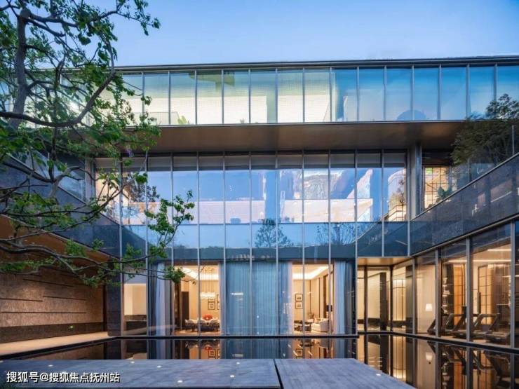 下沉庭院四周沉淀感的石材和建筑主体纯净轻盈的玻璃幕墙相互呼应,营造出静谧灵动的空间。