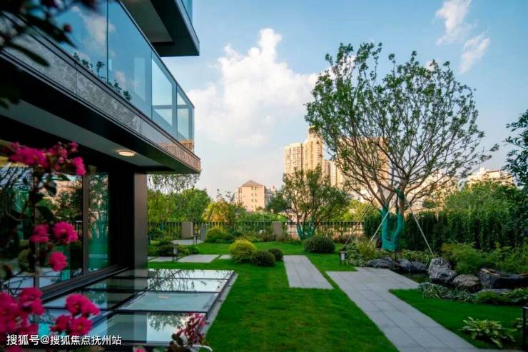 花园入户,门前绿地,约230㎡的庭院,将世间的美好景物皆收藏于此。围合近一亩前庭后院,有天有地有院落;建筑空间与庭院景致自然嵌合,立于庭院中,视野由近及远,树、河、湖逐次展开,收放有度,一切自如。
