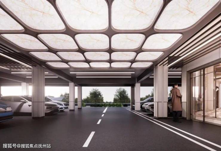 这样一来,二层可实现全人车分流,一层用来打造会所、阳光景观车库等等。